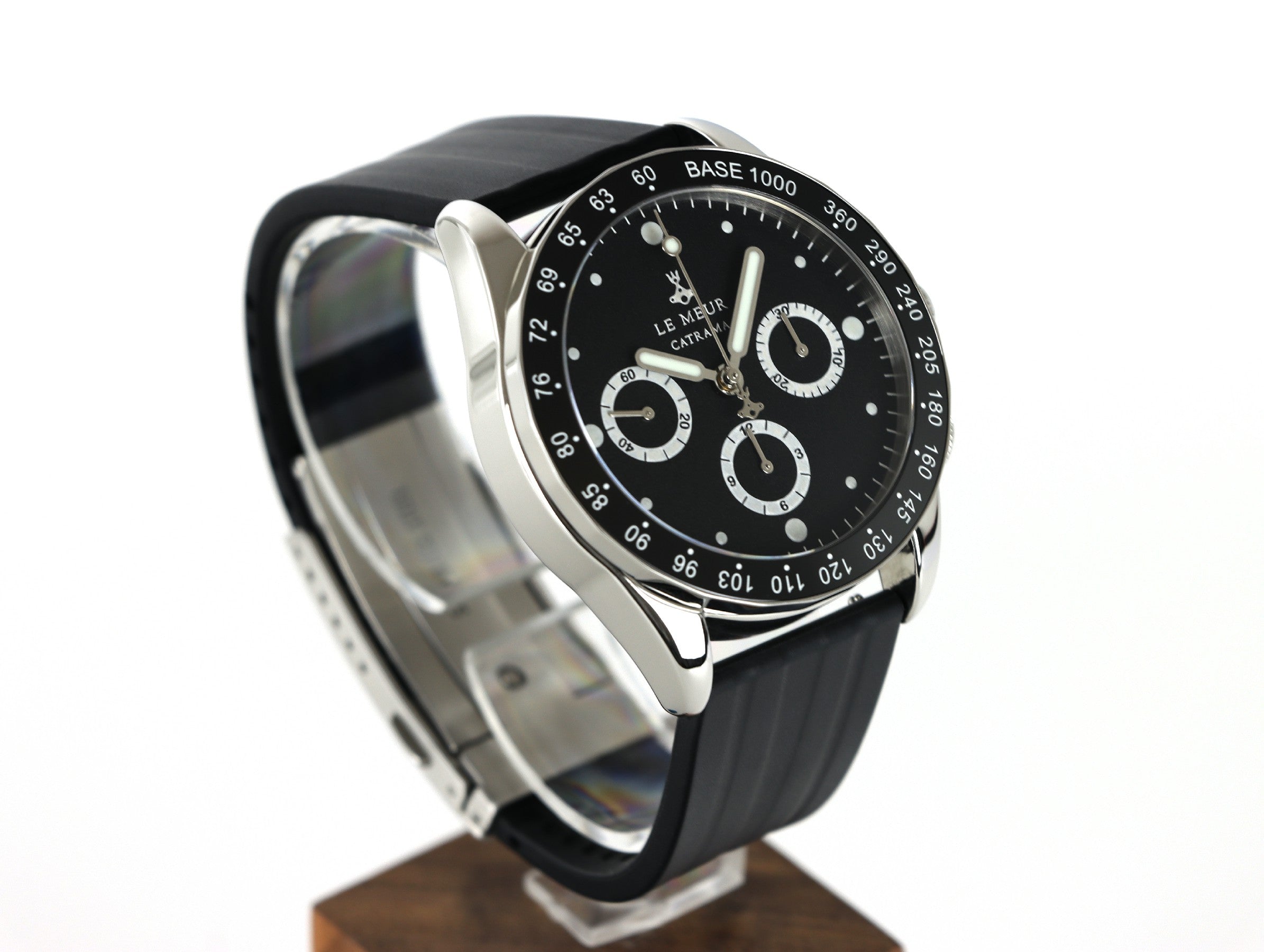 Avec Catrama, les Montres Le Meur vous proposent une interprétation des chronographes qui mêle des éléments esthétiques et techniques des années 50 à aujourd'hui, en évoquant le sport automobile profondément ancré sur notre Île.